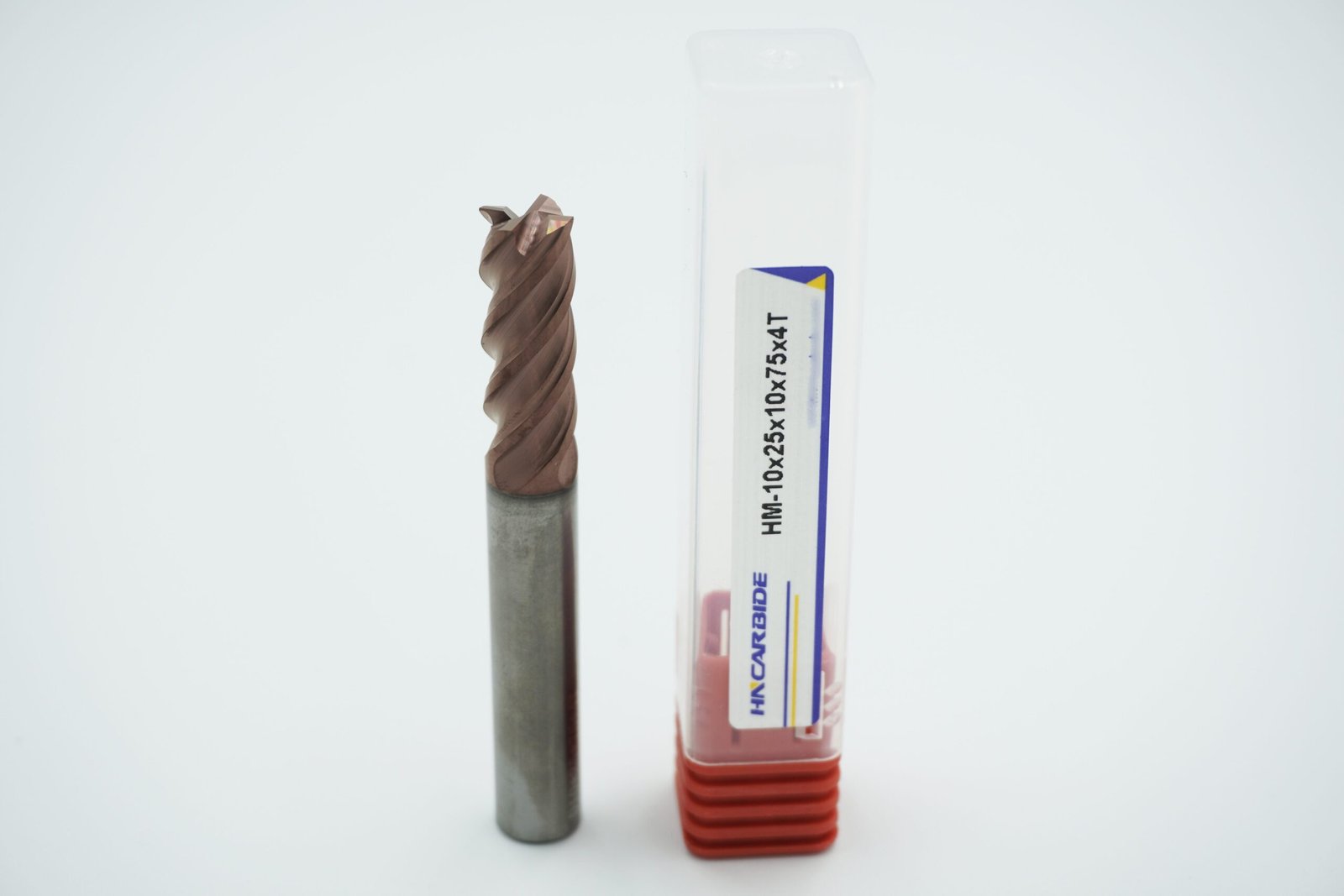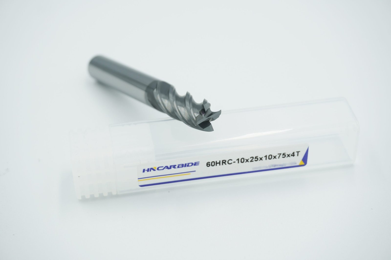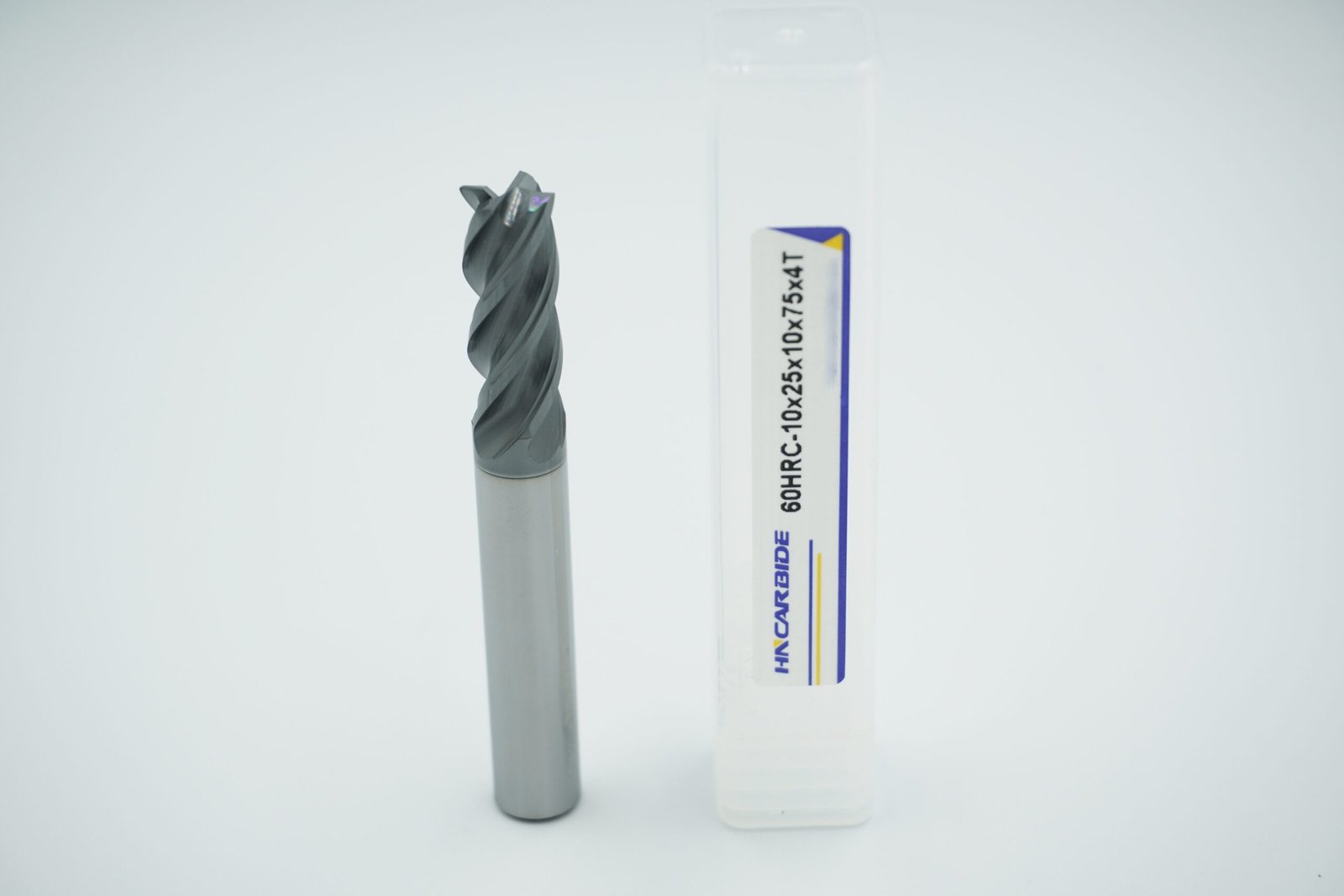 The 4-flute end mill carbide cutter geometry with corner radius reduces chipping on the cutting edge, improves tool life and helps achieve a smoother surface finish on shoulders and pockets. Optimized helix angle and flute design support reliable chip evacuation while minimizing vibration and work hardening in difficult stainless materials. As a professional china cnc carbide end mill cutter manufacturer, HNCarbide offers this HRC60 corner radius tungsten carbide end mill cutter in a wide range of metric and inch sizes, with optional coatings and customized lengths for different CNC machining setups.