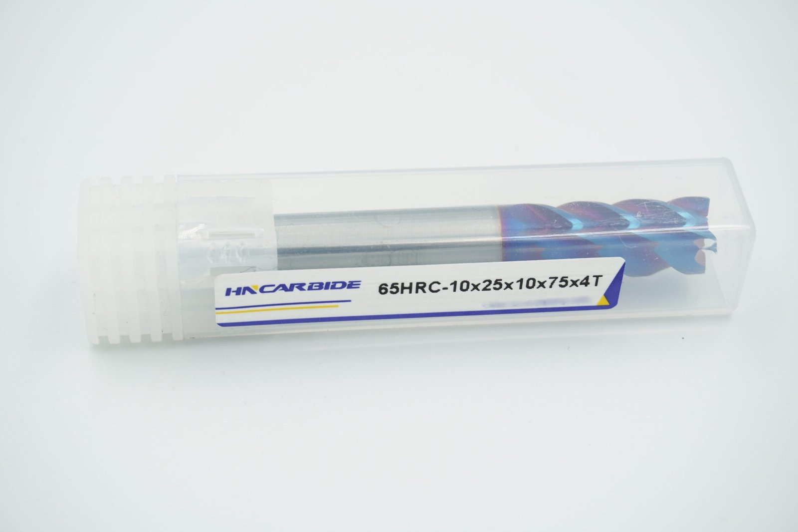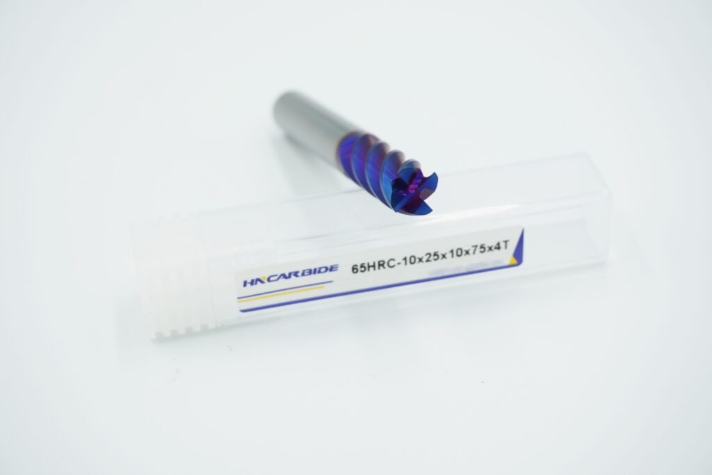 HNCarbide 4 flutes 65HRC blue nano coated carbide end mill cutter flat is engineered for high-speed machining of hardened steel, stainless steel and alloy steel up to 65HRC. Using ultra-fine grain solid carbide end mill cutter substrate and advanced CNC grinding, this tool offers outstanding wear resistance, stable cutting and long tool life under heavy load and high-temperature conditions.