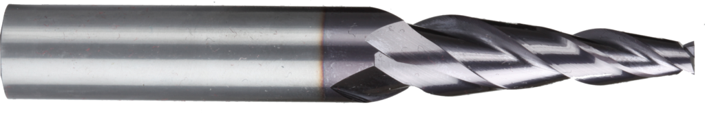 A 20 degree taper end mill provides strong tool support and excels in more open features or situations where the tool can be kept relatively short. It can be a very effective option for strong cutting with minimal vibration.